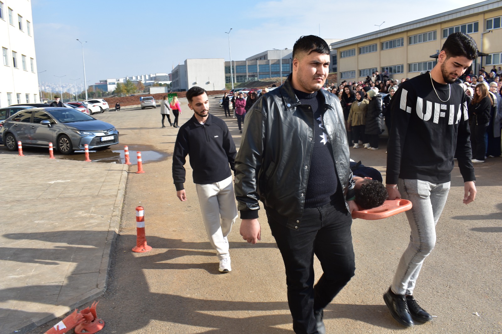 AFAD uzmanlarının koordinasyonunda yapılan tatbikatta, akademik ve idari personel ile öğrencilerin afet anında çök–kapan–tutun, güvenli tahliye ve toplanma alanına ulaşma becerileri uygulamalı olarak pekiştirildi.