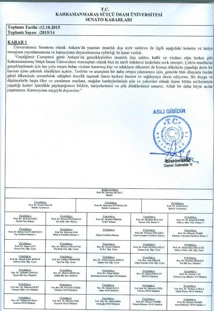 KSÜ Senatosu Kınama ve Başsağlığı Mesajı