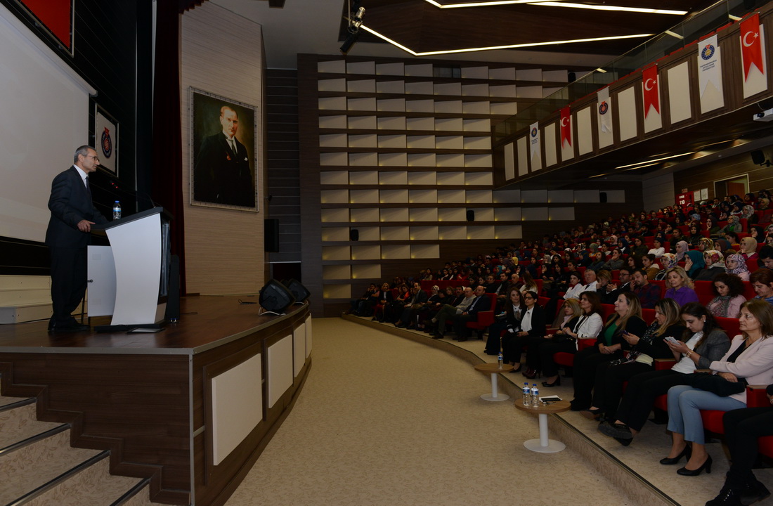 Konferans sunumunun ardından Rektör Yardımcısı Prof. Dr. Kadir Saltalı, Doç. Dr. Zeynep Güngörmüş’e konferansa katkıları için teşekkür plaketi verirken, Güngörmüş adına düzenlenen teşekkür belgesini ise Sağlık Bilimleri Fakültesi Dekanı Prof. Dr. Deniz Tuncel ve Tıp Fakültesi Dekanı Prof. Dr. Kamile Gül tarafından takdim edildi.