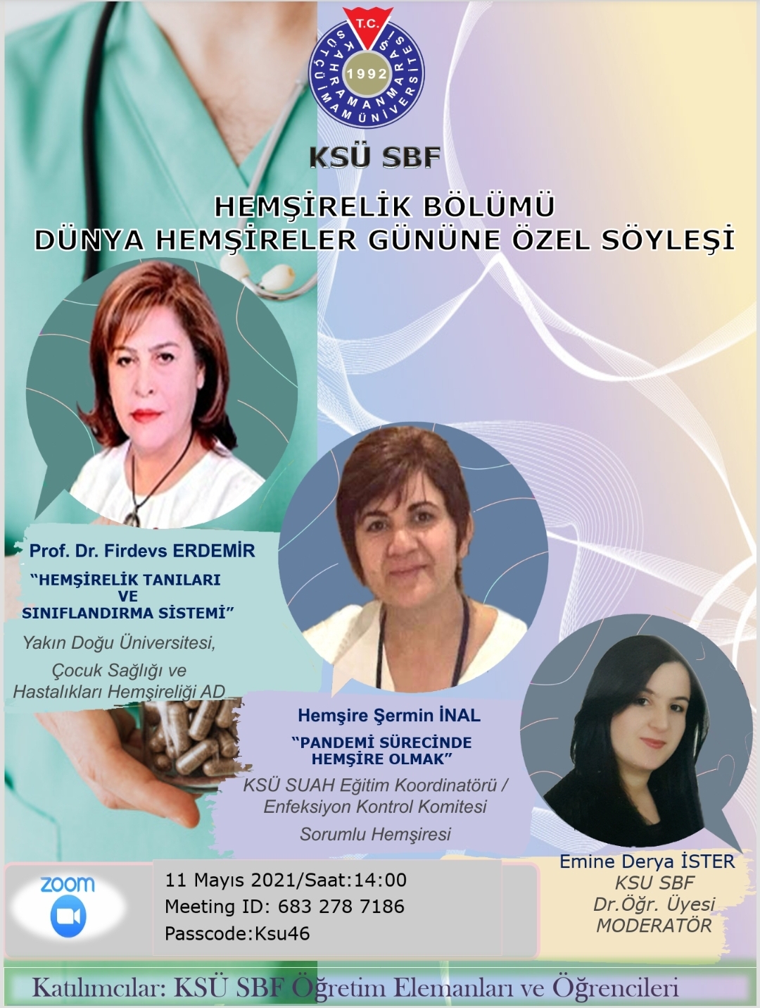 Bölümümüz tarafından 11 Mayıs 2021 tarihinde 12 Mayıs Hemşireler Günü kapsamında online söyleşi düzenlenmiştir.