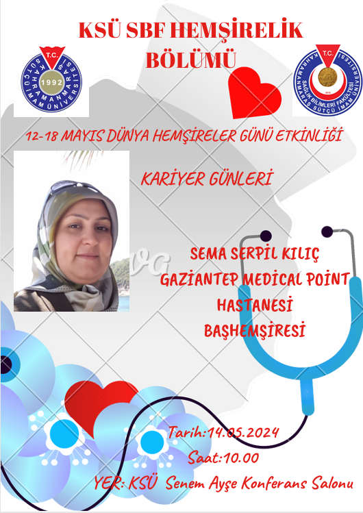 12 Mayıs Hemşireler Günü etkinliği kapsamında bölümümüz dördüncü sınıf öğrencilerine yönelik Gaziantep Medical Point Hastanesi Başhemşiresi Sema Serpil KILIÇ''ın konuşmacı olarak katıldığı kariyer günleri yapıldı. Özel hastanede çalışma ve kariyer basamaklarının anlatıldığı etkinlik öğrencilerin sorularının cevaplanmasının ardından sona erdi.