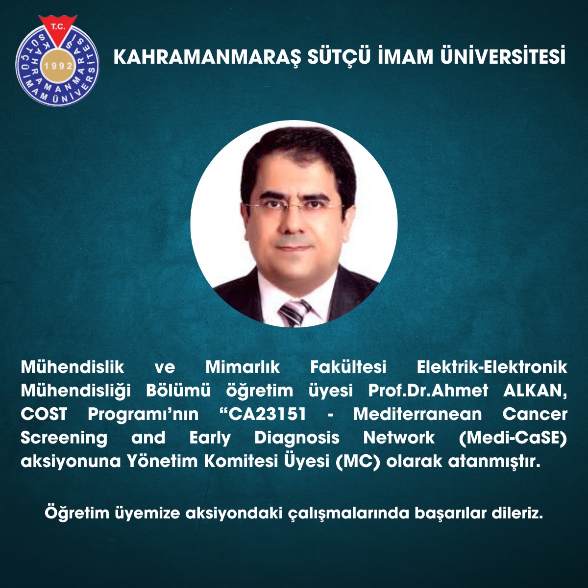 Prof.Dr.Ahmet ALKAN COST Programına Yönetim Komitesi (MC) Üyesi Olarak Atandı