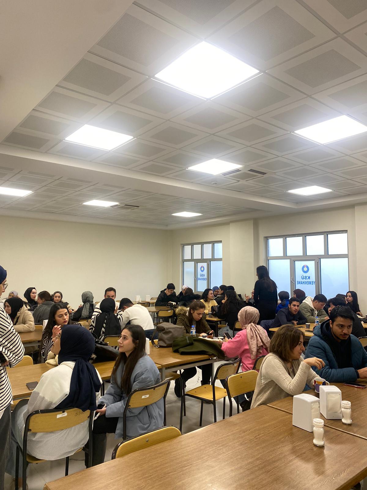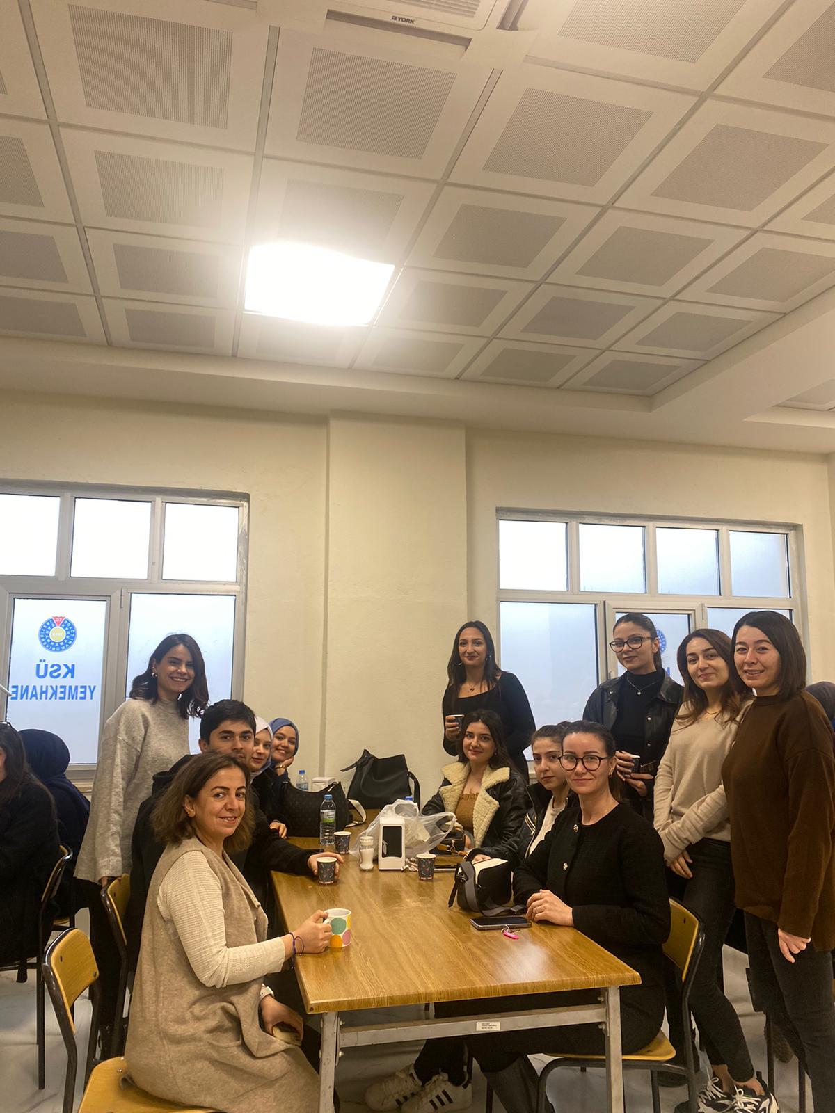 Topluluğu işbirliği ile 15 Aralık Uluslararası Çay Günü kapsamında öğrenciler ile öğretim elemanları bir araya geldi. İnsanın günlük ritüellerinin vazgeçilmez bir parçası ve sosyal hayatımızın önemli bir yeri olan Çayın birleştirici gücü, öğretim elemanları ve hemşirelik bölümü öğrencilerini yoğun katılım ile bir araya getirmiş olup soğuk kış günlerinde derslere kısa bir mola vermiştir.
