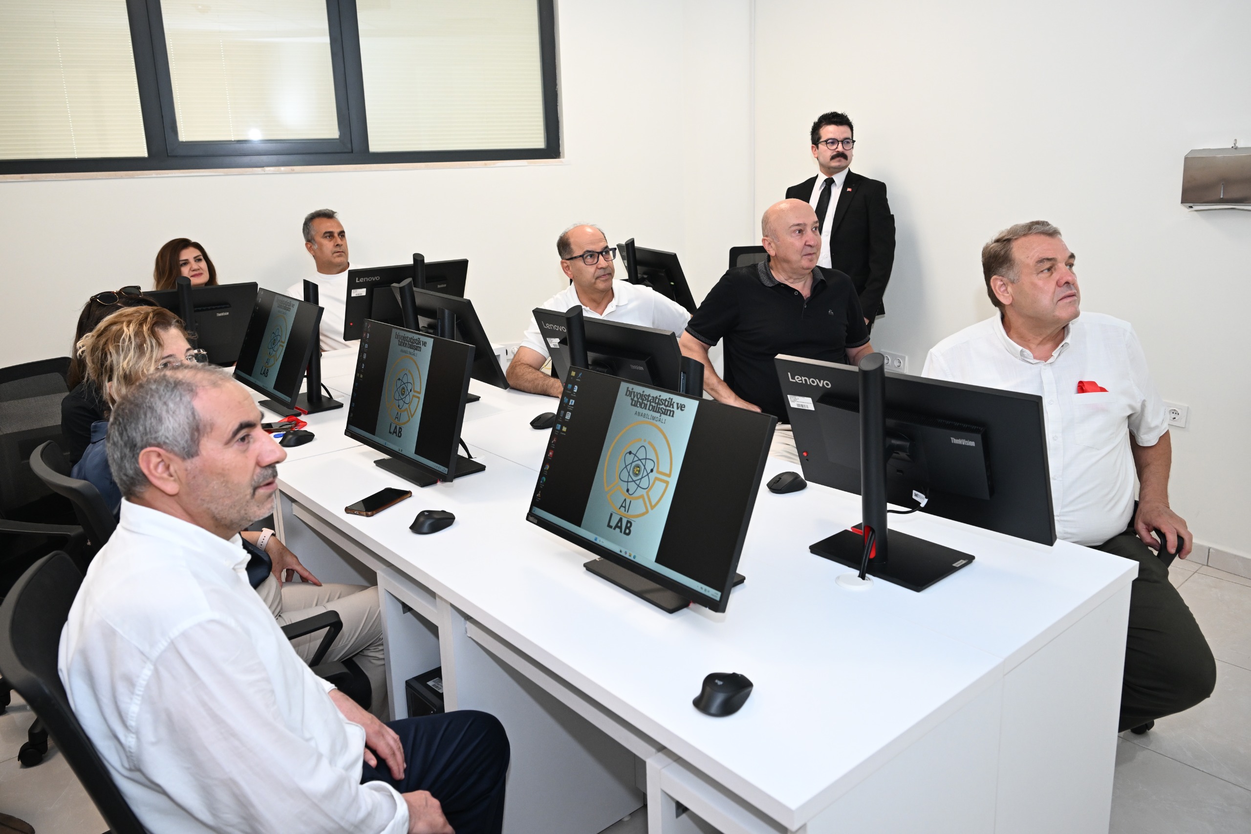 Kurdele kesiminin ardından Rektör Prof. Dr. Alptekin Yasım ve katılımcılar, laboratuvarı gezerek yapay zeka tarafından hazırlanan tanıtım filmini izlediler.