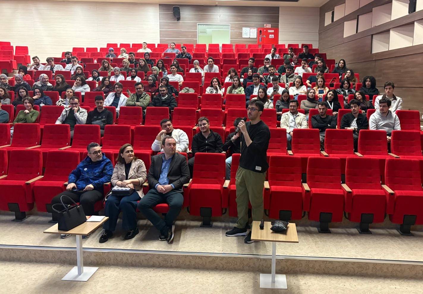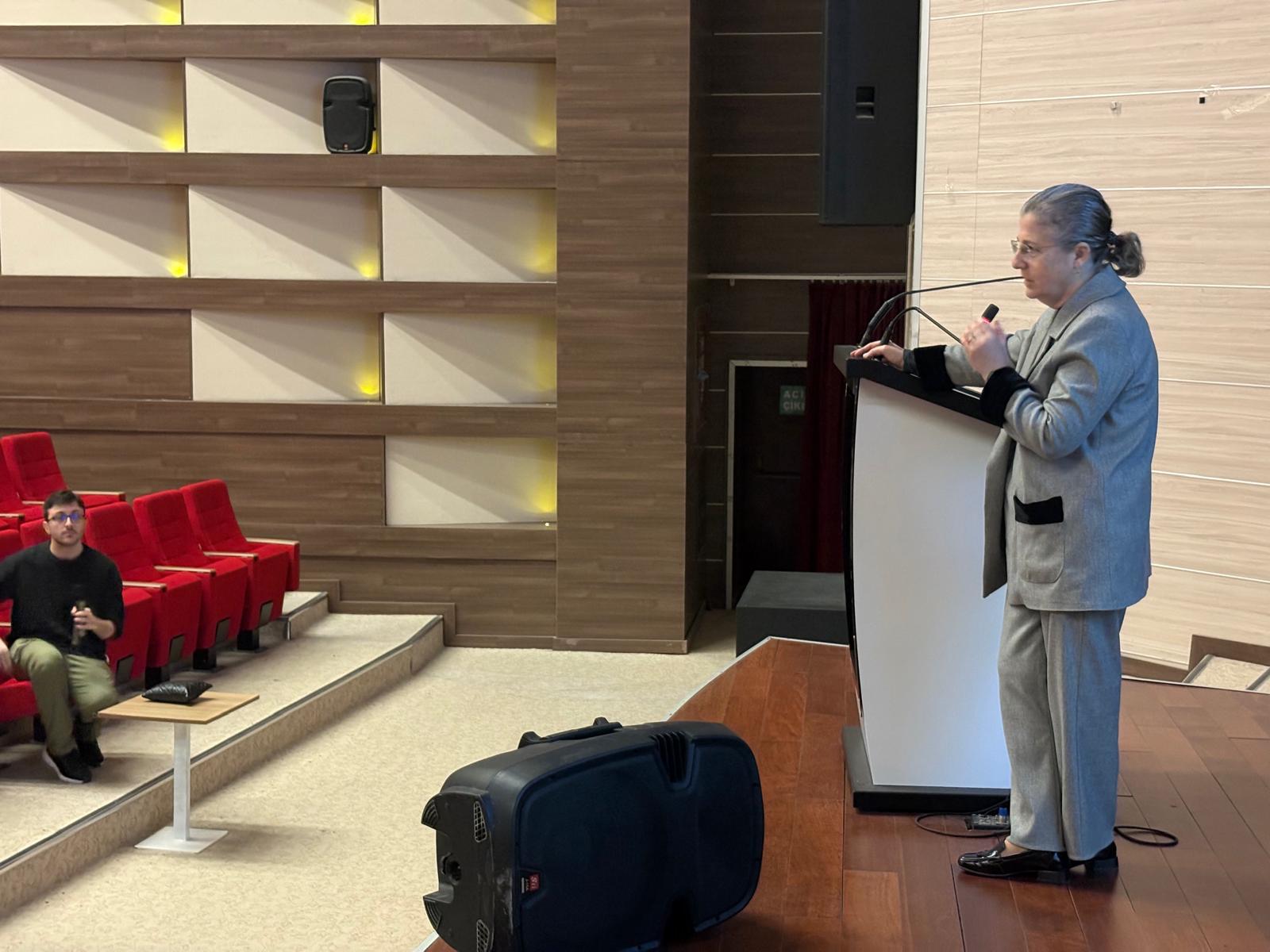 Mevcut uygulamaların öğrenci gözüyle değerlendirildiği söyleşide, iyileştirmeye yönelik öğrenci geri bildirimleri ele alındı. Dekan Prof. Dr. Hafize Öksüz, geri bildirimlerin eğitim kalitesini artırmadaki kritik rolüne değinerek, geri bildirimlerin titizlikle analiz edileceğini belirtti.