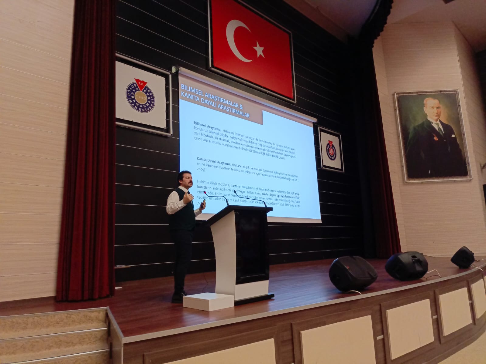 Fakültemiz Dönem IV öğrencilerine "Kanıta Dayalı Tıp Uygulamaları" kapsamında Biyoistatistik ve Tıbbi Bilişim Ana Bilim Dalı Öğretim Üyesi Doç. Dr. Adem DOĞANER tarafından 25 Mart 2024 Pazartesi günü Hastane Konferans Salonunda literatür taraması, makale inceleme ve kanıt temelli bilimsel verilerle çalışma eğitimi verildi.